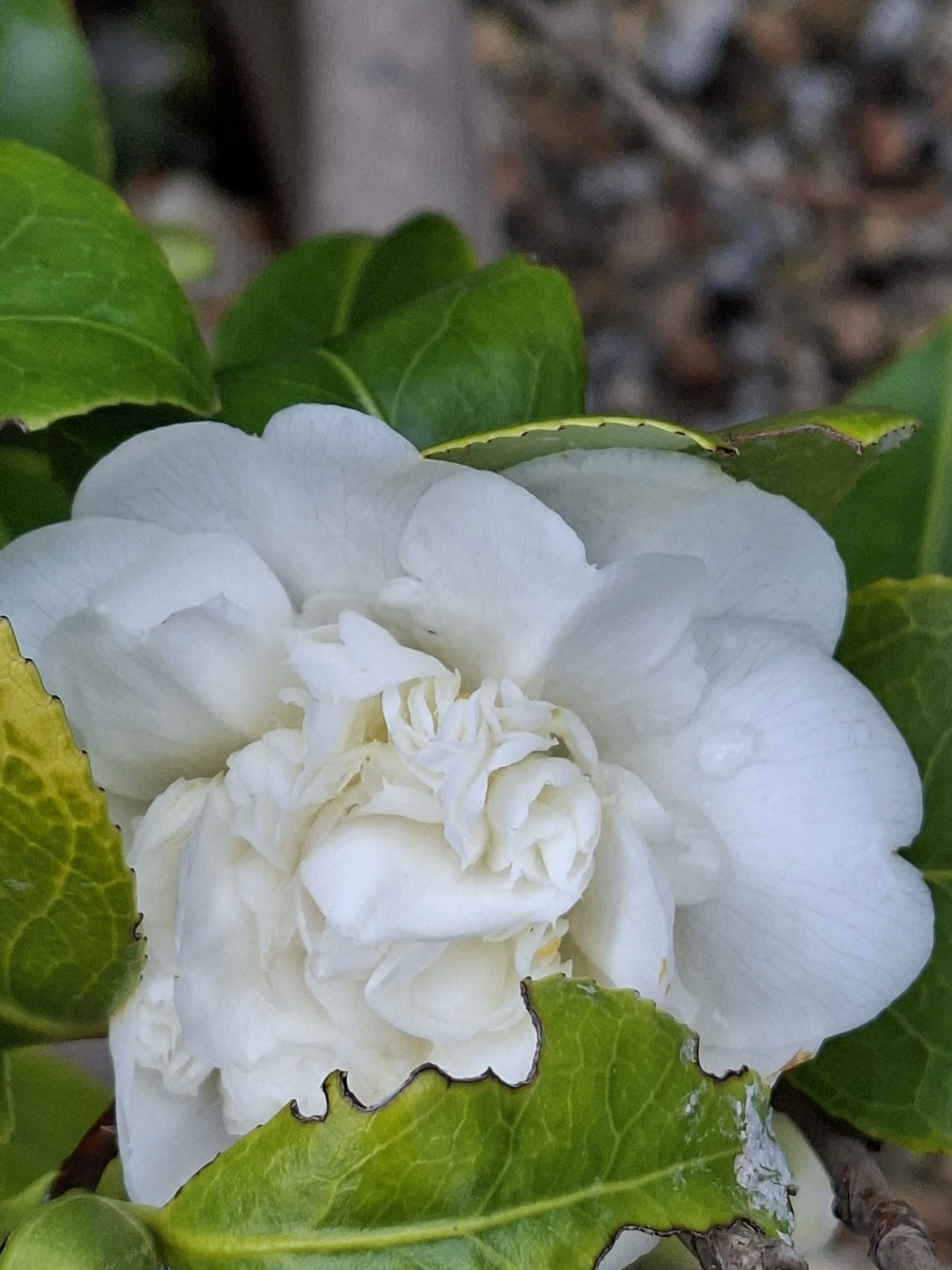 Nestled among the non too perfect leaves was a perfect flower. The layers of petals were starting to unfurl even though the wind was howling. then I saw them on the outer petal. Two beautiful rain drops sitting on the petal and desite the wind not moving. Gravity hadn’t moved them.
